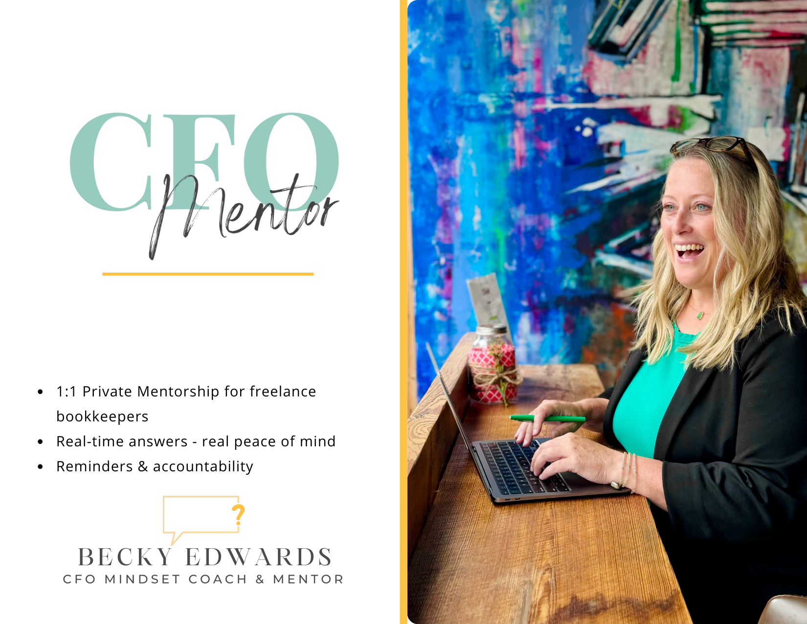 As a CFO Mentor member you receive: (1) 30 minute private 1:1 call with Becky each month ✦ On-going chat support (direct with Becky) ✦ Personal guidance with accounting & financial questions and issues. → → Got a quick question? Becky's got a quick answer! Chat support eliminates lengthly calls and keeps you moving forward. → → Need deeper guidance?Monthly private calls support you exactly how you need. → → Not sure what you need this month? Training checkpoints develop your financial knowledge